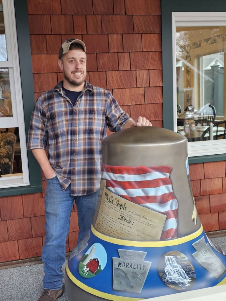 America250PA, the official state entity for the 250th celebration, is making sure all 67 counties in Pennsylvania are a part of this historic milestone. One of their programs is Bells Across PA, which places fiberglass replicas of the Liberty Bell in each county. Every bell is designed by a local artist. Robert Heinrich Jr. painted Sullivan County’s bell, which is displayed at the Eagles Mere Inn. Titled “We the People,” the bell depicts the Constitution and an American flag, along with local scenes like the Loyalsock Canyon Vista. Wyoming County’s bell, titled “Community United Through Strength,” is located at the Wyoming County Healthcare Center in Tunkhannock. It was designed by Allison LaRussa, featuring local landmarks like the Nicholson Bridge, the Dietrich Theater, and more.