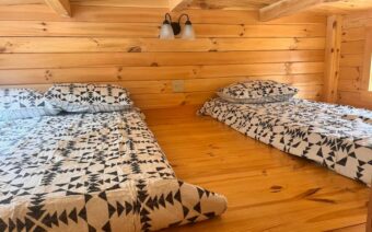 Nestled in the serene woodlands just off Lake Carey in Tunkhannock, this three-bedroom loft cabin is the perfect space whether you’re looking to relax and take in nature or get away with friends and family. With lakefront access, you can take a swim or bring your own kayak/canoe and enjoy the beautiful scenery. Walking distance from the Old Carter Barn, the cabin has five beds and comfortably sleeps eight guests with a full bathroom, heat/air conditioning, and a full kitchen. Additional space is available on-site with two full RV hookups for an additional fee.